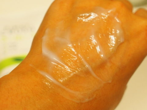 こちらは手の甲に伸ばしてみた様子ですが、柔らかく瑞々しいテクスチャーなので伸びが良く、顔全体になじませやすいです。