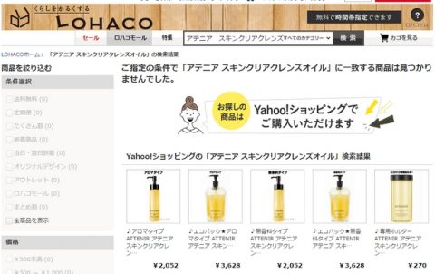 LOHACOには在庫がなく、代わりにYahoo!ショッピングでご購入いただけます」というリンクが表示されました。
